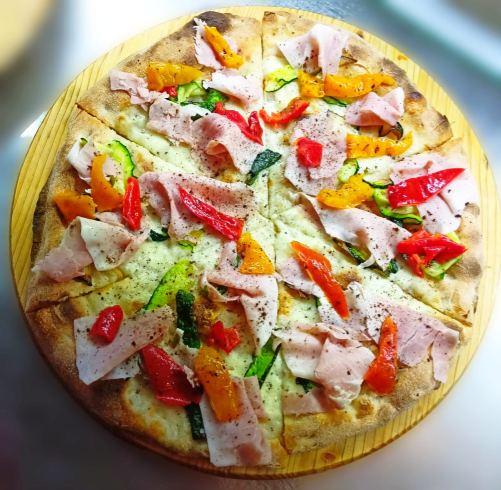 Gran Biscotto, zucchine grigliate, peperoni fantasia, mozzarella molisana e polvere di liquirizia.